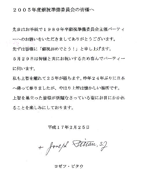 ピタウ元学長からの手紙