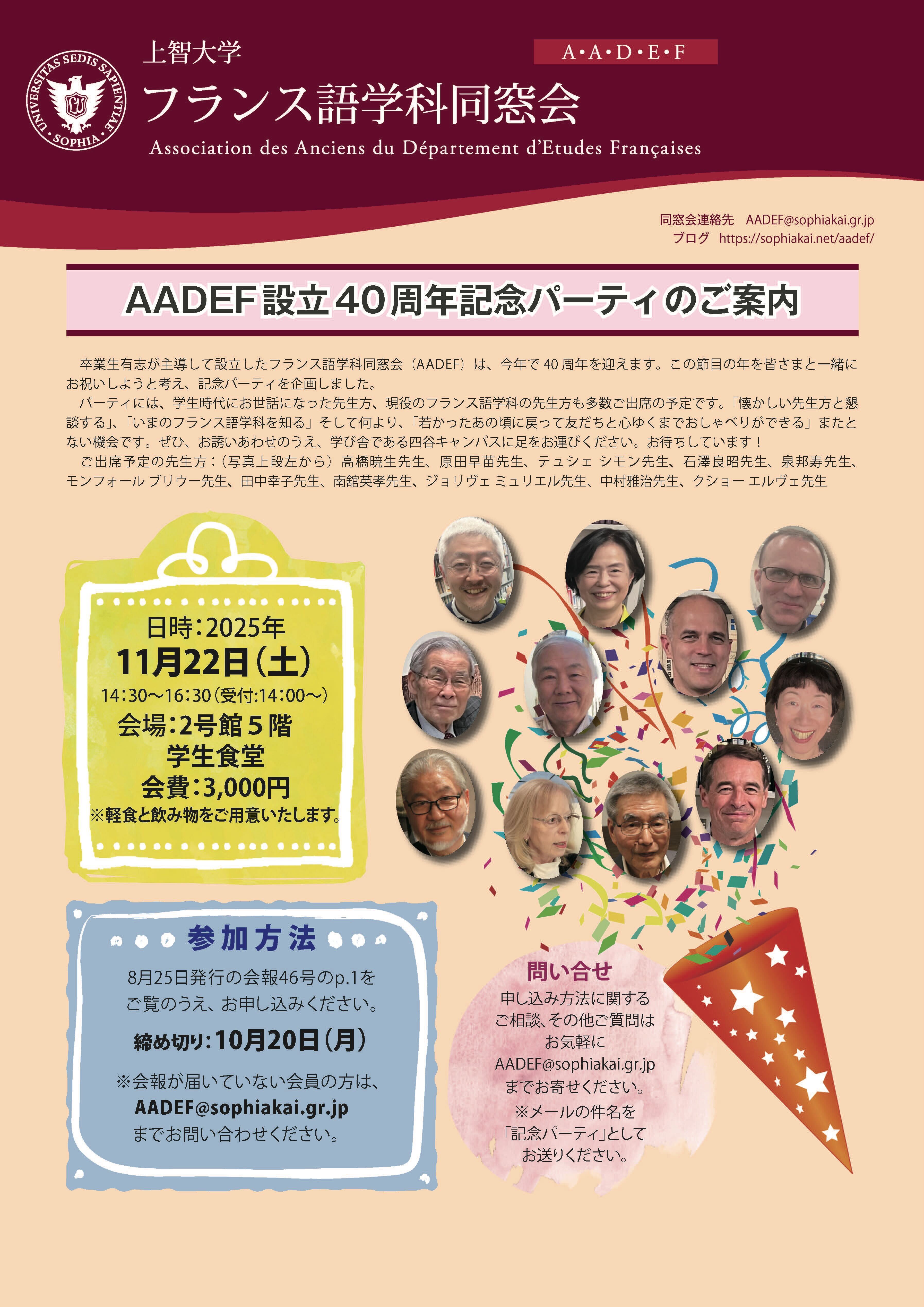 AADEF設立40周年記念パーティ&合同追悼ミサのご案内