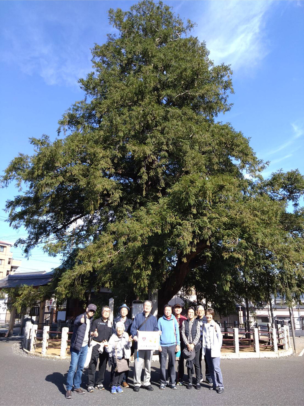 北与野駅に集合し、上町氷川神社を最初に見学し、鈴屋大堂までの七福神の寺社を見学。最後に七福神ではありませんが、樹齢1100年の国指定の榧(カヤ)の高木がある妙行寺を見学しました。