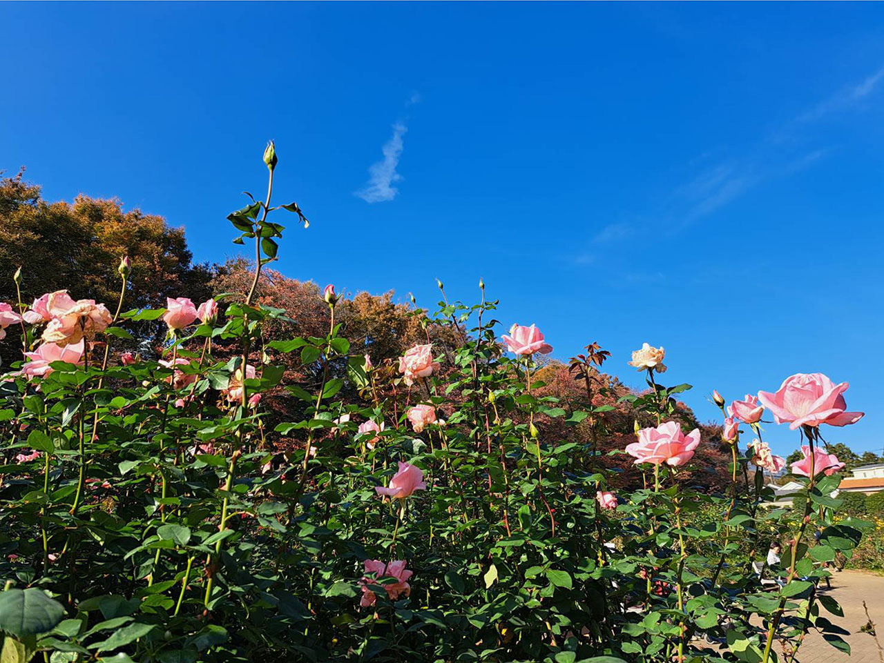 与野公園は、バラ公園としても有名であり200種類以上のバラが咲き、5月のバラのシーズンには、多くの訪問者が訪れて、見事に手入れされたバラを楽しむことができます。今回は秋バラの見ごろは過ぎていましたが、何種類かのバラを愛でることができました。
