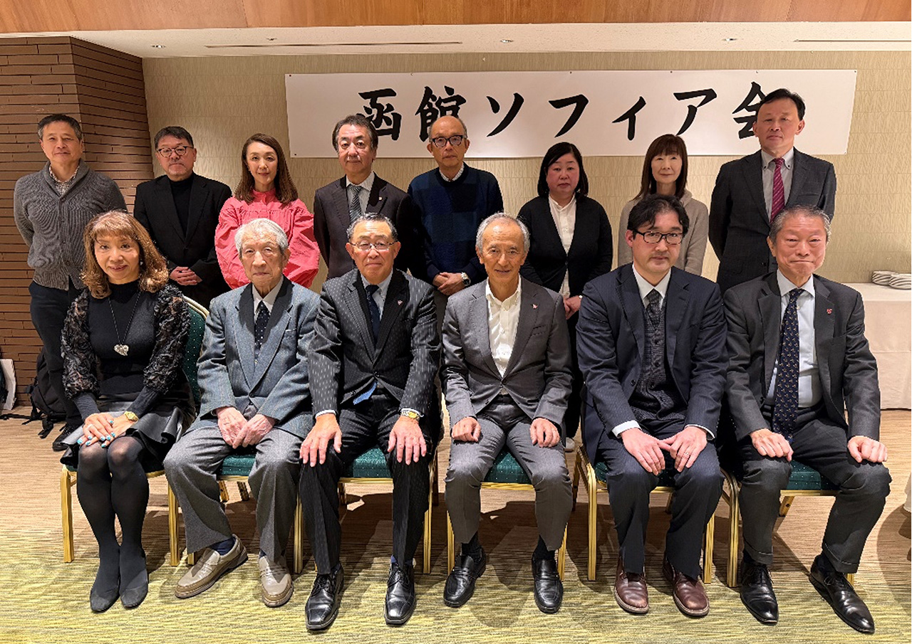 11月24日(月・祝)の午後五時より函館国際ホテルにて2年ぶりの会合を開催致しました。今回は会員11名(内新会員1名)に加えて本部より鳥居会長、川崎組織委員長のお二人と、八戸ソフィア会から佐久間副会長のご参加を頂きました。改めて感謝を申し上げる次第です。