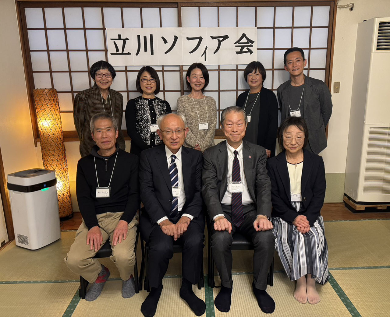 2025年11月22日、立川南口「良銀」にて、第18回立川ソフィア会を開催しました。重なった会長職の逝去、コロナ禍・・・と休眠状態が数年続いたため、暫くぶりの開催でした。ソフィア会事務局からはメール配信サービスなどのご助力をいただき、またソフィア会本部からご臨席いただいた川崎晴夫組織委員長からは、現役生の頼もしい活躍の現況を伺うことができました。