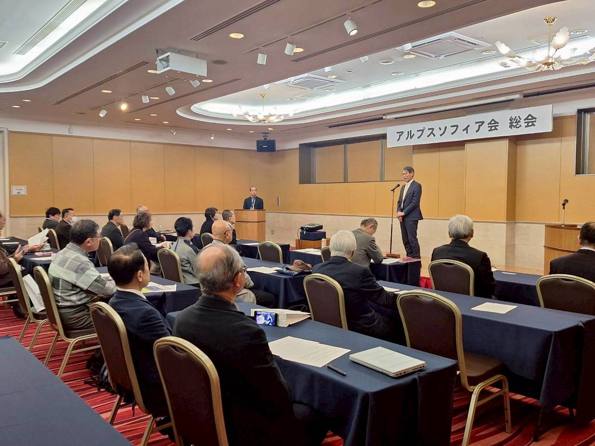 アルプスソフィア会は、3月15日(日)ホテルモンターニュにて今年度の総会及び懇親会を開催いたしました。今年は地元松本ご出身の赤堀雅幸上智大学副学長および川崎晴夫ソフィア会組織委員長にご臨席賜り、また千曲川ソフィア会、山梨ソフィア会からもご参加いただき総勢25名での開催となりました。
