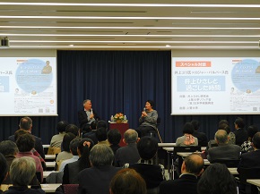 11月27日ソフィア会と「井上ひさし研究会」の共催で、故井上ひさし夫人の井上ユリさんと作家・東京工業大学名誉教授で井上ひさしさんと親交があり井上作品の英訳も手掛けたロジャー・パルバースさんに、スペシャル対談として井上ひさしの作品と人物の魅力についてたっぷりと語っていただきました。