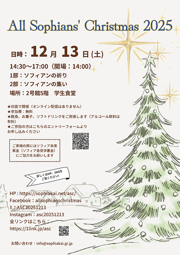 今年もAll Sophians' Christmasの準備の季節となりました。