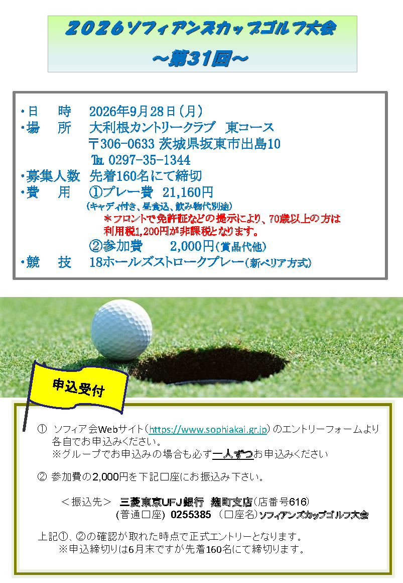 (1)恒例のショートホールでのチャリティは、「ソフィア会奨学基金」へ寄付いたします。 |