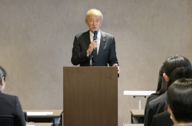当日は大学側から永野学生センター長、ソフィア会からは鳥居会長など関係者が出席、代表者に目録を手渡しました。