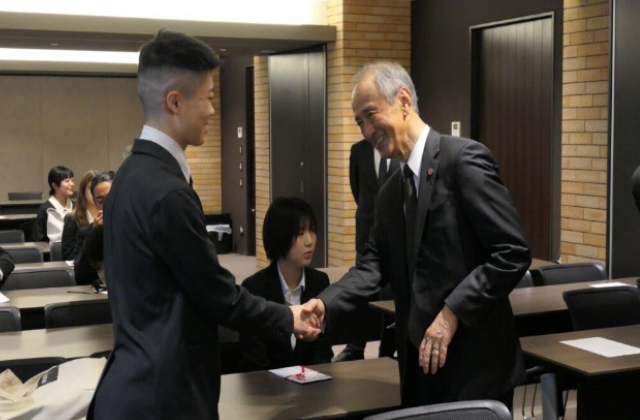式の最後には懇談の場を設け、鳥居会長、永野学生センター長をはじめ受賞者との交流を行ないました。