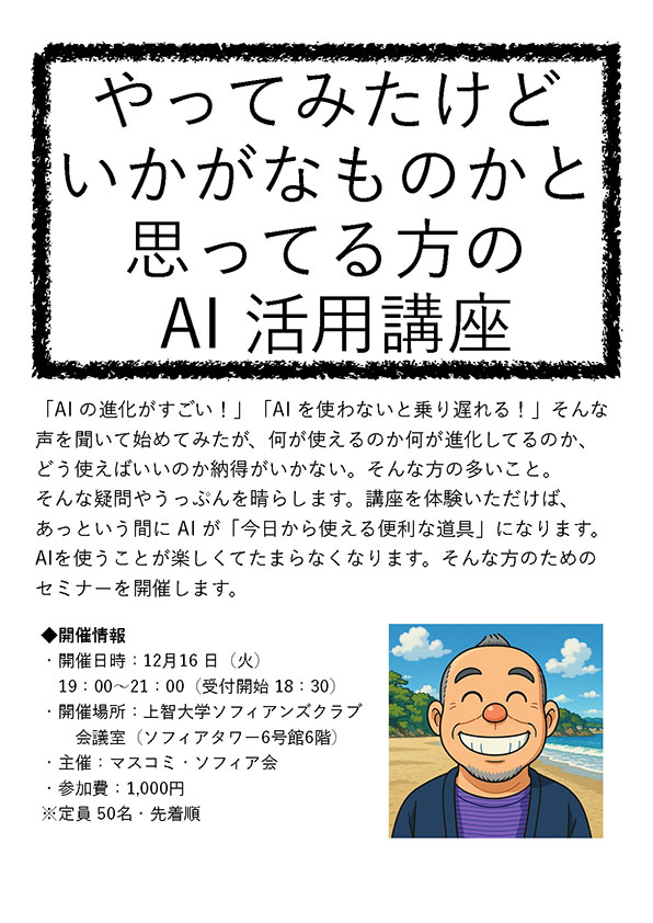 12月16日開催:いまどきのAI活用講座!