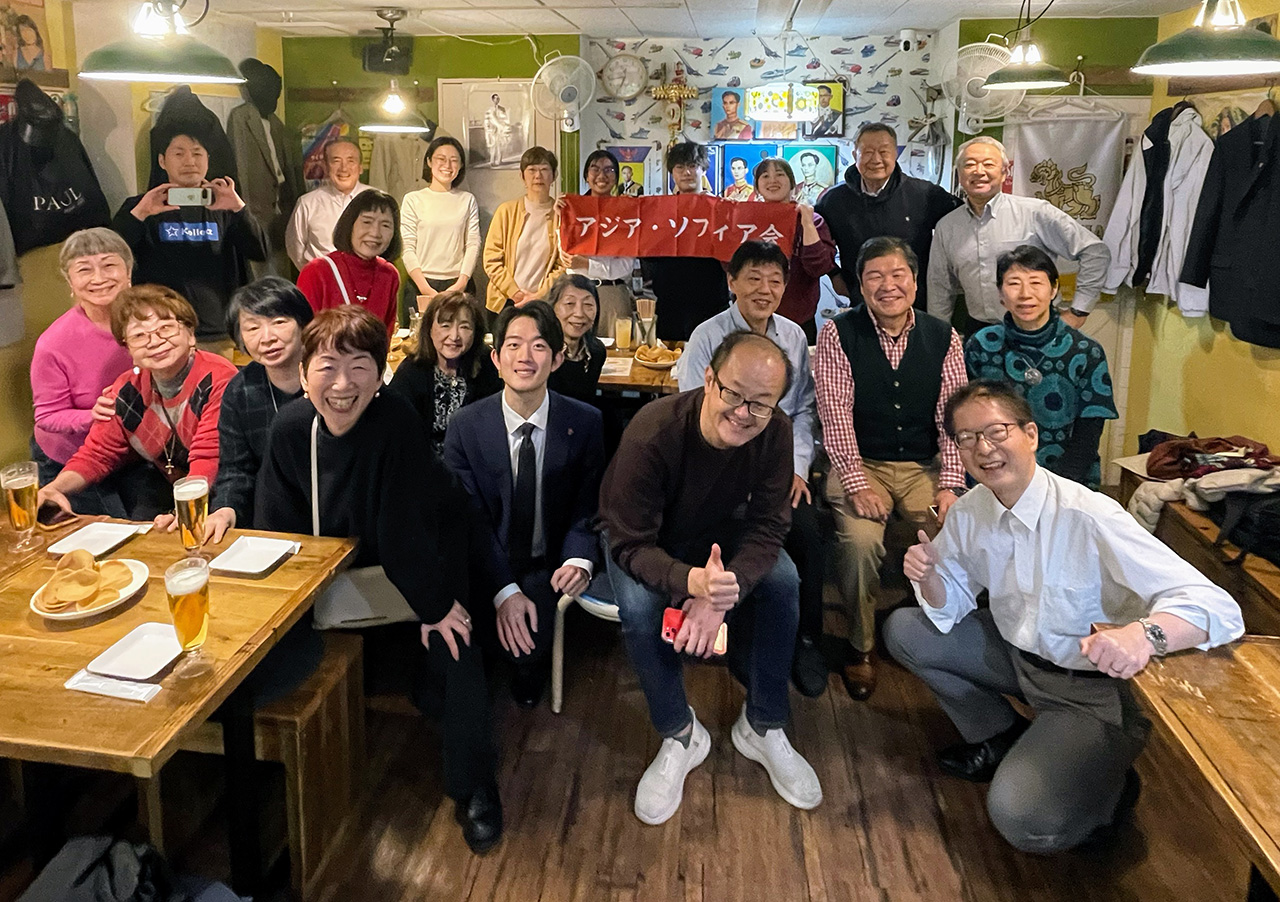 当日は、元学長の早下先生をはじめ総勢22名の参加を得て、盛会となりました。スマイルちゃんも、故郷のタイ料理に舌鼓を打ち、多くの先輩に囲まれて心強いソフィアの絆を感じてくれたようです。