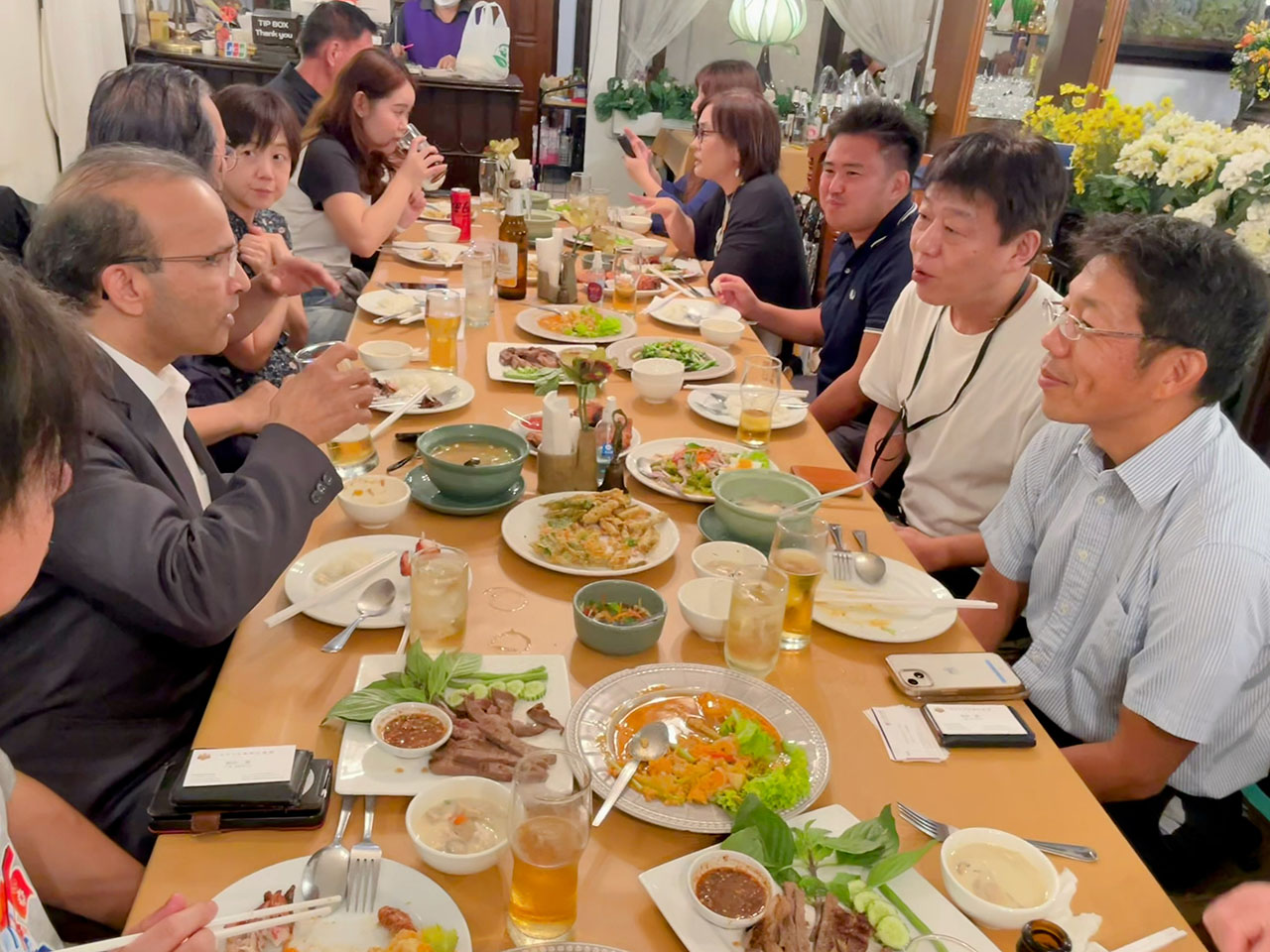 上智学院・サリ理事長のご臨席を賜り、昨今のバンコク事情に関する情報交換を行い、20名の参加者が盛り上がりました。