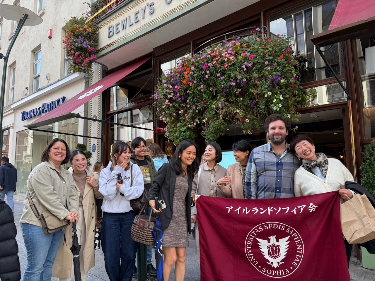 外に出てからもグラフトン・ストリートの真ん中で「アイルランドソフィア会」の旗を広げてしまった私たち。爆笑しながら、また次の再会を約束しました。