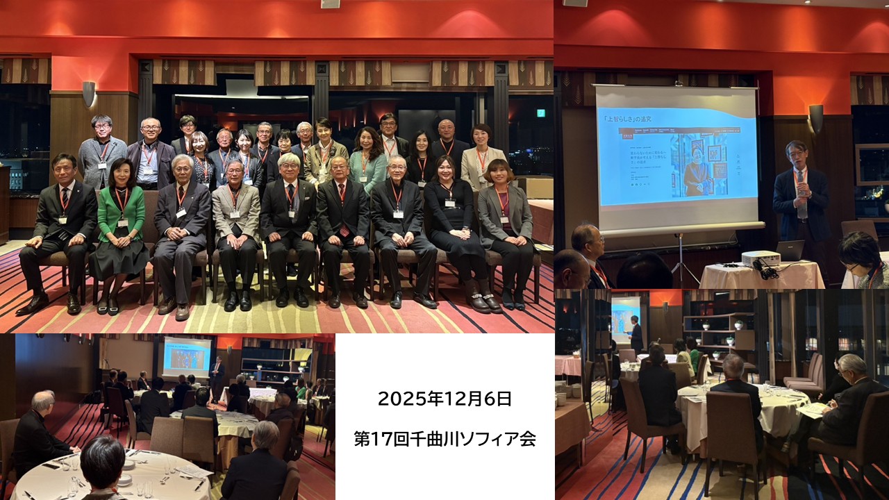 2007年6月に復活設立された千曲川ソフィア会は、2025年12月に上智学院矢島理事、上智大学赤堀副学長をお招きし、第17回総会を開催しました。 この地域登録のソフィアンは約300名。 毎年1回の総会、不定期の懇親会を開いています。若手からシニアまで和気藹々です。 |